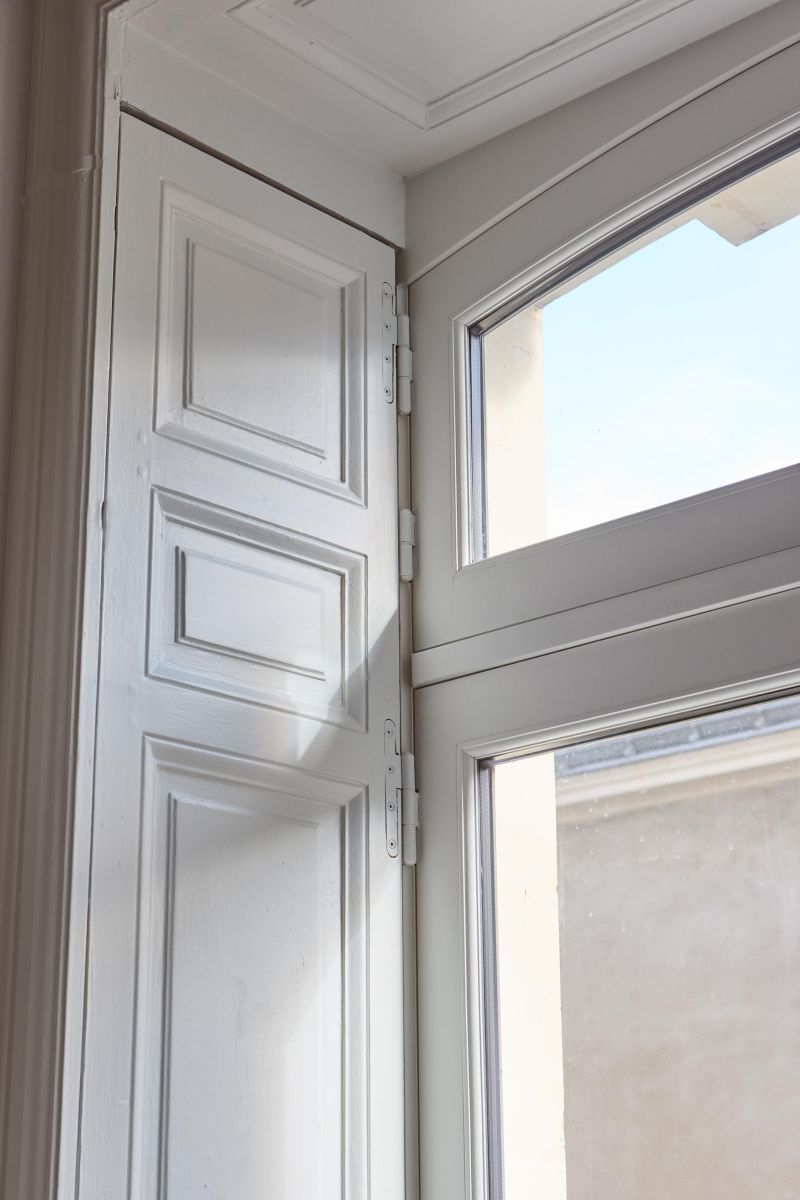 | Finition de base | - Véritable crémone à l’ancienne fonctionnelle en applique. - Paumelles traditionnelles droites (zinguées peintes avec la menuiserie, noir, blanc) ou paumelles traditionnelles à turlupet (noir, blanc, vieux fer, vieux bronze). - Moulurations : Pente à 40° et quart de rond intérieur |